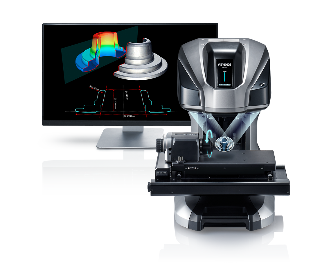 表面 3D 輪廓量測儀「VR-6000 系列」以非接觸方式實(shí)現(xiàn)粗糙度儀、輪廓形狀測量儀的量測。此 3D 輪廓量測儀可以使用 0.1 μm解析度掌握觸針式無法完全量測的面整體形狀。全新搭載了電動(dòng)旋轉(zhuǎn)裝置。藉由一邊旋轉(zhuǎn)樣品一邊量測,無死角呈現(xiàn)真實(shí)的截面形狀。輕鬆量測以往必須截?cái)嗖拍苷_量測的部位厚度及深度尺寸。掃描能力透過 HDR 掃描演算法進(jìn)化,針對(duì)光學(xué)式輪廓量測儀不易量測的光澤表面及較弱的反射材料目標(biāo)物,亦可以瞬間判斷最佳條件,準(zhǔn)確量測形狀。動(dòng)態(tài)掃描範(fàn)圍最高可達(dá)以往的 1000 倍。
