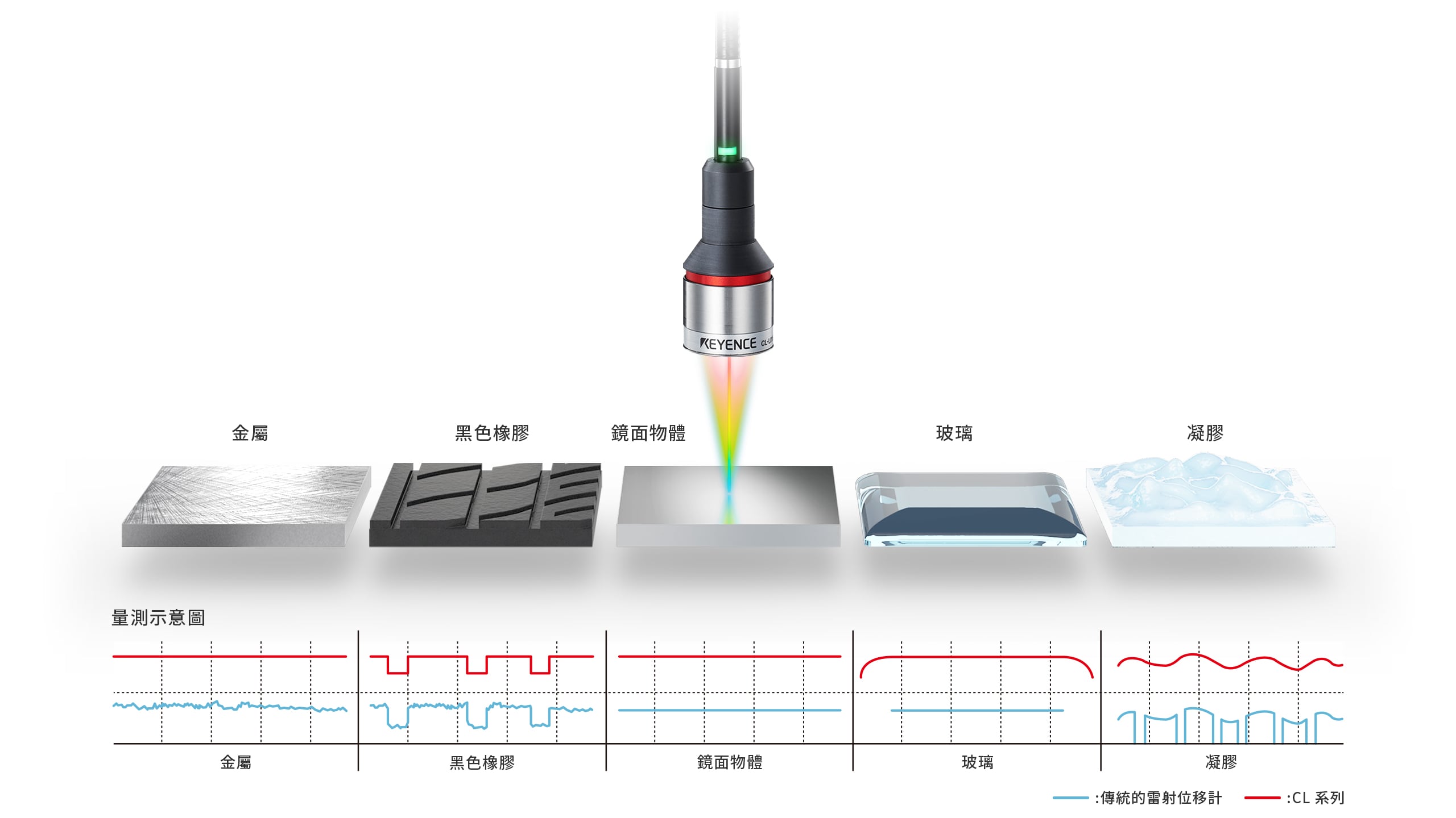 可對所有目標物進行高精度量測,感測頭設(shè)置、程式設(shè)定也很簡單。CL-3000 為不受設(shè)置方法、場所、用途限制的超小型彩色共焦雷射位移計,因應(yīng)「提高品質(zhì)」「防止不良品流出」「提升良率」等製造課題,能提高品質(zhì)檢查的可靠性。