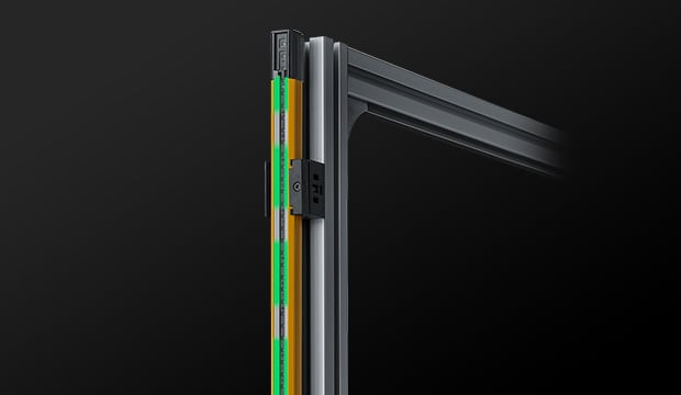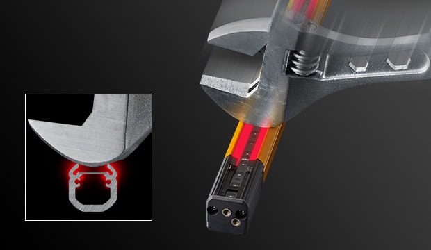 安全光柵GL-V 系列搭載大型線狀指示燈,僅靠本體即可清楚顯示狀態(tài)。當(dāng)入光時顯示綠色,遮光時顯示紅色,即使從遠處也能一眼辨識光柵是否遮光,有助於迅速復(fù)原作業(yè)。此外,透過顯示模式還可確認(rèn)受光量降低或錯誤狀態(tài),便於及早採取對策。GL-V 系列可廣泛應(yīng)用於設(shè)備啟動、調(diào)整與運轉(zhuǎn)階段。雖然尺寸僅為22 mm × 22 mm,卻具備約3 mm 厚的堅固外殼結(jié)構(gòu),展現(xiàn)高耐用性。重新設(shè)計的內(nèi)部光學(xué)構(gòu)造更支援最長15 公尺的檢測距離。