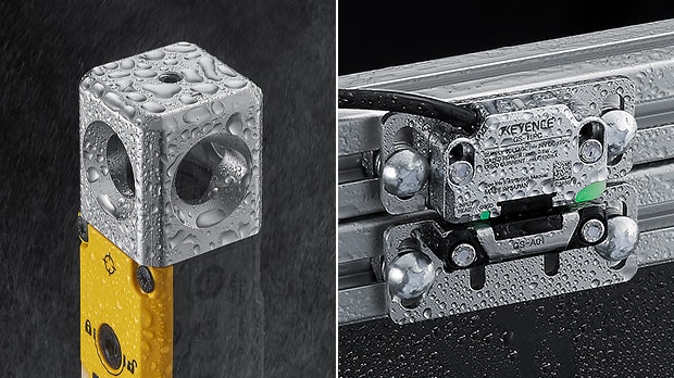 安全門(mén)感測(cè)器/安全門(mén)開(kāi)關(guān),是用來(lái)確認(rèn)安全門(mén)或保護(hù)蓋等可動(dòng)式防護(hù)遮罩的開(kāi)關(guān)狀態(tài)用的安全裝置。「GS系列」安全門(mén)感測(cè)器分為鎖定型(GS-50/70)與非接觸型(GS-10);鎖定型又分為機(jī)械鎖定式(GS-50)與電磁鎖定式(GS-70)。不同於一般機(jī)械式安全鎖,全新的「GS系列」不但機(jī)身輕巧,所有型號(hào)都結(jié)構(gòu)牢固並能於充滿水氣與油的環(huán)境中使用(對(duì)應(yīng)IP65/67/69K)。操作簡(jiǎn)單、擁有高信賴(lài)性,不會(huì)降低生產(chǎn)現(xiàn)場(chǎng)作業(yè)效率,是可實(shí)現(xiàn)最高安全水準(zhǔn)的門(mén)感測(cè)器。