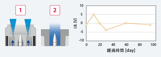 A.C.A.B 採(cǎi)用Clean Air Barrier進(jìn)一步進(jìn)化而來(lái)的Advanced Clean Air Barrier系統(tǒng)??刂乒┙o的CDA流動(dòng),在電極周邊形成「層流」。透過(guò)大幅減少導(dǎo)致靜電消除性能退化的電極前端「附著物」,實(shí)現(xiàn)減少維護(hù)業(yè)務(wù)的目的。
