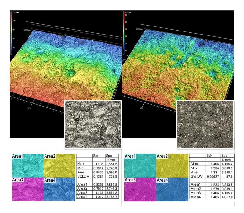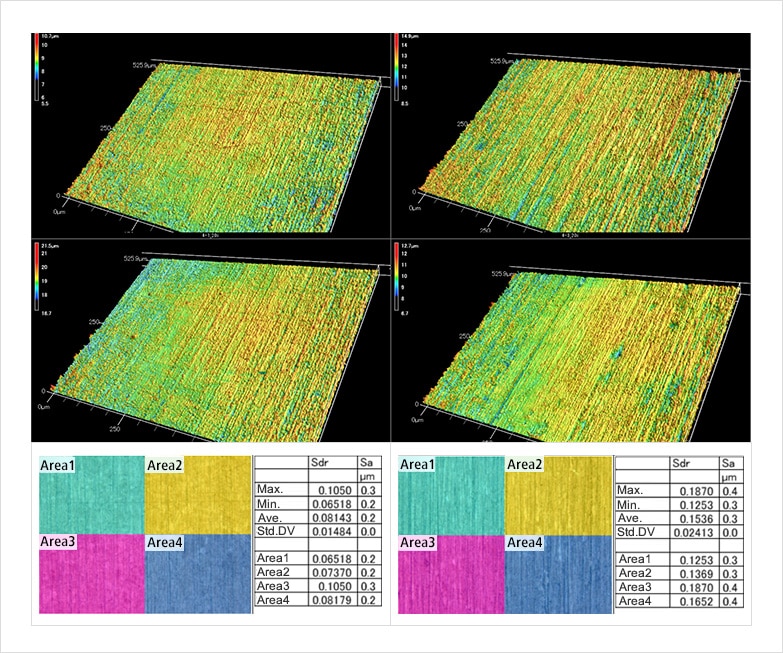 定量化因?yàn)榻饘偌庸しóa(chǎn)生的差異 Sa(算術(shù)平均高度)/Sz(最大高度)/Str(表面性狀長(zhǎng)寬比)