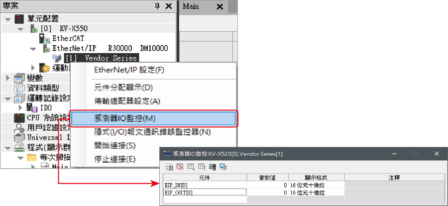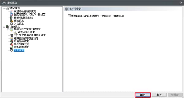 對(duì)於 CPU 功能版本為 2.0 或更高版本的 KV 系列,可以將變數(shù)分配給 EtherNet/IP 的連接。 在 EtherNet/IP 連接上分配變數(shù)時(shí),請(qǐng)?jiān)凇癈PU 系統(tǒng)設(shè)定”對(duì)話框中的“系統(tǒng)設(shè)定”的“其他設(shè)定”中勾選“更新 Ether-Net/IP 設(shè)定時(shí)顯示"變數(shù)設(shè)定"對(duì)話框(E)。 通過從“KV STUDIO”功能表中選擇 [ 檢視(V)] ? [CPU 系統(tǒng)設(shè)定 (P)] 來顯示“CPU 系統(tǒng)設(shè)定”對(duì)話框。