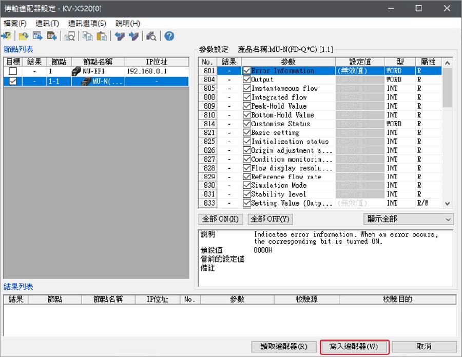 *要讀取感測(cè)器的設(shè)置值,請(qǐng)選擇 [讀取適配器 (R)]。