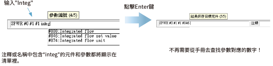 輸入操作符時(shí),您可以使用 RT(Real-Time)編輯功能,只需輸入變量名稱的一部分即可輸入變量。此功能可免除搜尋變數(shù)名稱的麻煩,減少編程的工時(shí)。