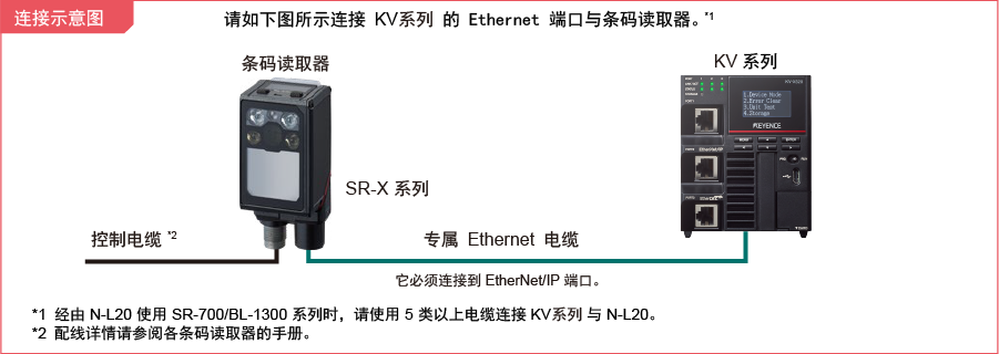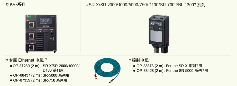 ※1 使用 SR-700/BL-1300 系列時(shí),需要 N-L20(需另外購買)。 ※2 這是連接讀碼器和 PLC 的電纜。使用 N-L20 時(shí)不需要此專用電纜。 ※3 此電纜用於連接 24 V 電源供應(yīng)器、I/O 端子和 RS-232C 連接埠。 ※4 使用 SR-5000 系列時(shí),請(qǐng)使用 OP-88437 或類似的選購電源線。