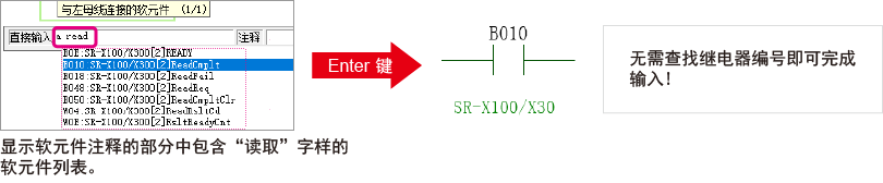 當(dāng)您使用階梯圖程式時(shí),您可以直接將元件註釋或參數(shù)名稱輸入到自動(dòng)搜索並顯示輸入候選項(xiàng)。