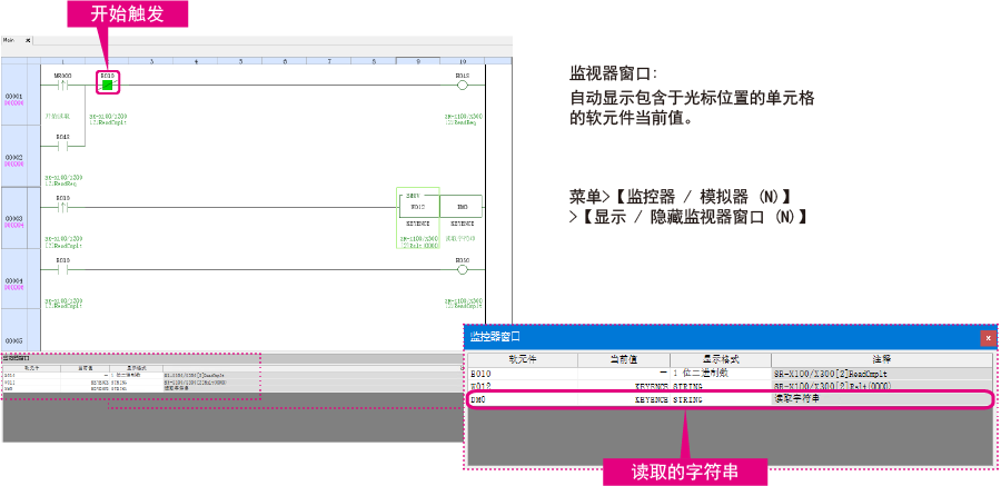 3. 讀取完成後,讀取的字串會(huì)從 SR_ReadData 開始儲(chǔ)存。
